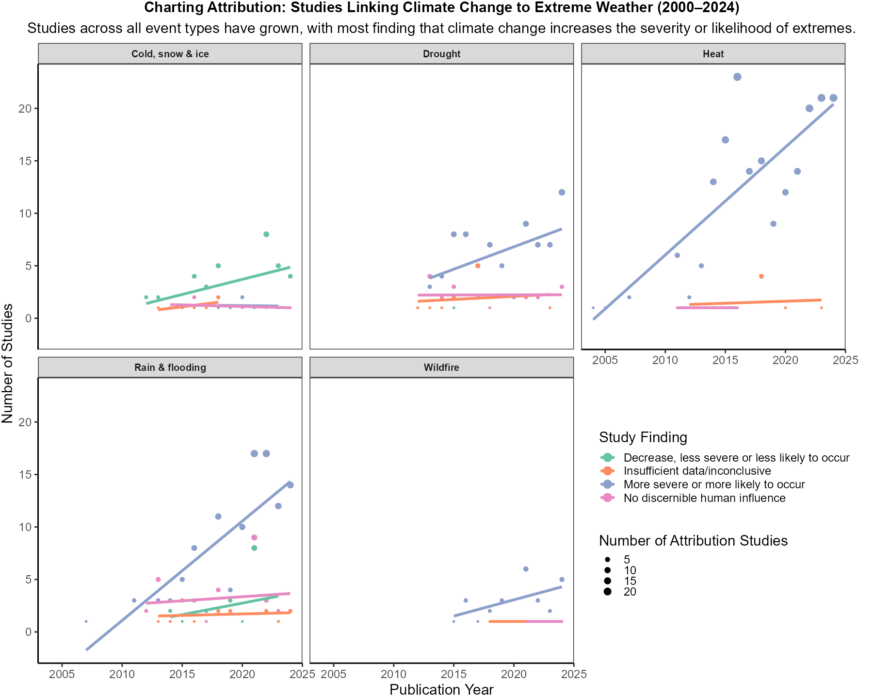 subtitle = "Studies across all event types have grown, with most finding that climate change increases the severity or likelihood of extremes.",